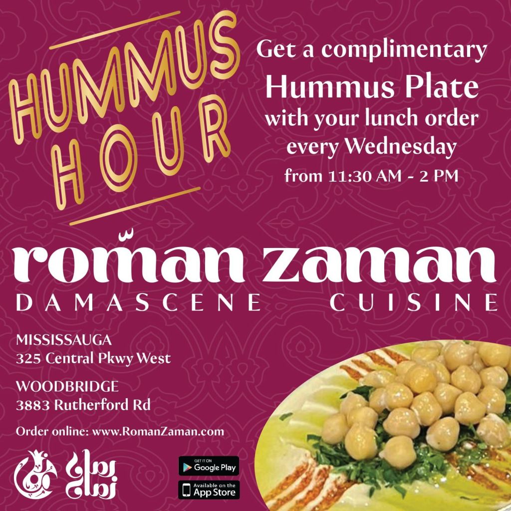 At Roman Zaman, you’ll be welcomed into a glamorous Damascene ambiance infused with refined Canadian elegance. Inspired by the ancient and sophisticated city of Damascus, our restaurant brings its timeless charm to life through authentic details—trickling fountains, traditional majlises, intricately carved doors, and shimmering chandeliers. From our name to every element of our decor, we aim to immerse our guests in the true spirit of the Mediterranean. Copper pots, wooden trays, and warm, heartfelt hospitality reflect the nobility and richness of Damascene culture, offering a dining experience that is both nostalgic and unforgettable.